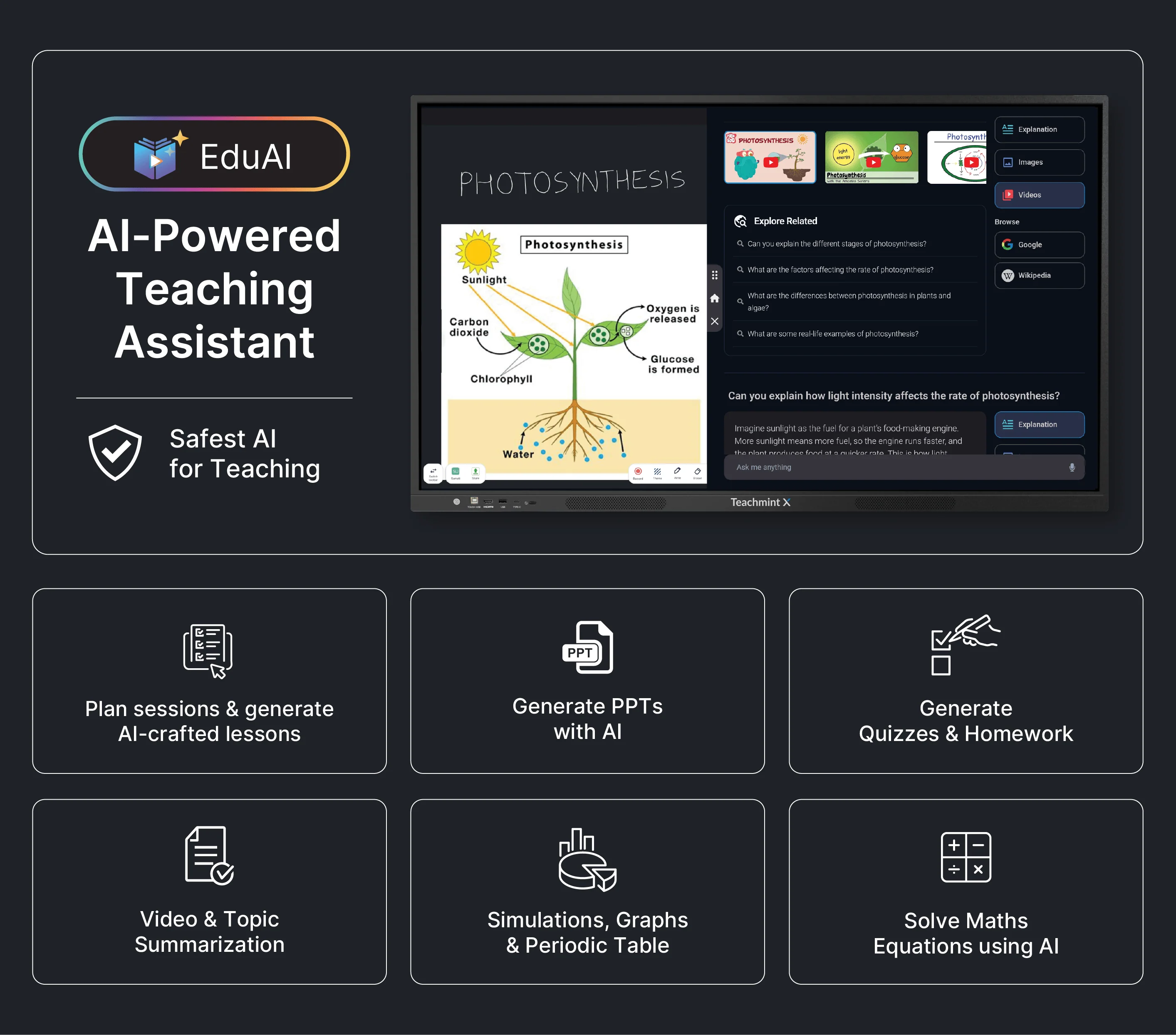 Transform teaching with our Google EDLA Certified AI-Powered Digital Board for Teaching, featuring Android 14, a 2X faster Octa-Core Processor, and the most powerful NPU for AI tasks. Teach seamlessly with an AI teaching assistant, the Connected Classroom App, & an All-in-One Whiteboard. Access your favorite Play Store apps with enhanced performance & security.